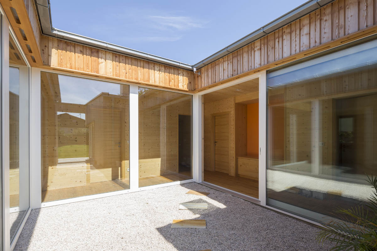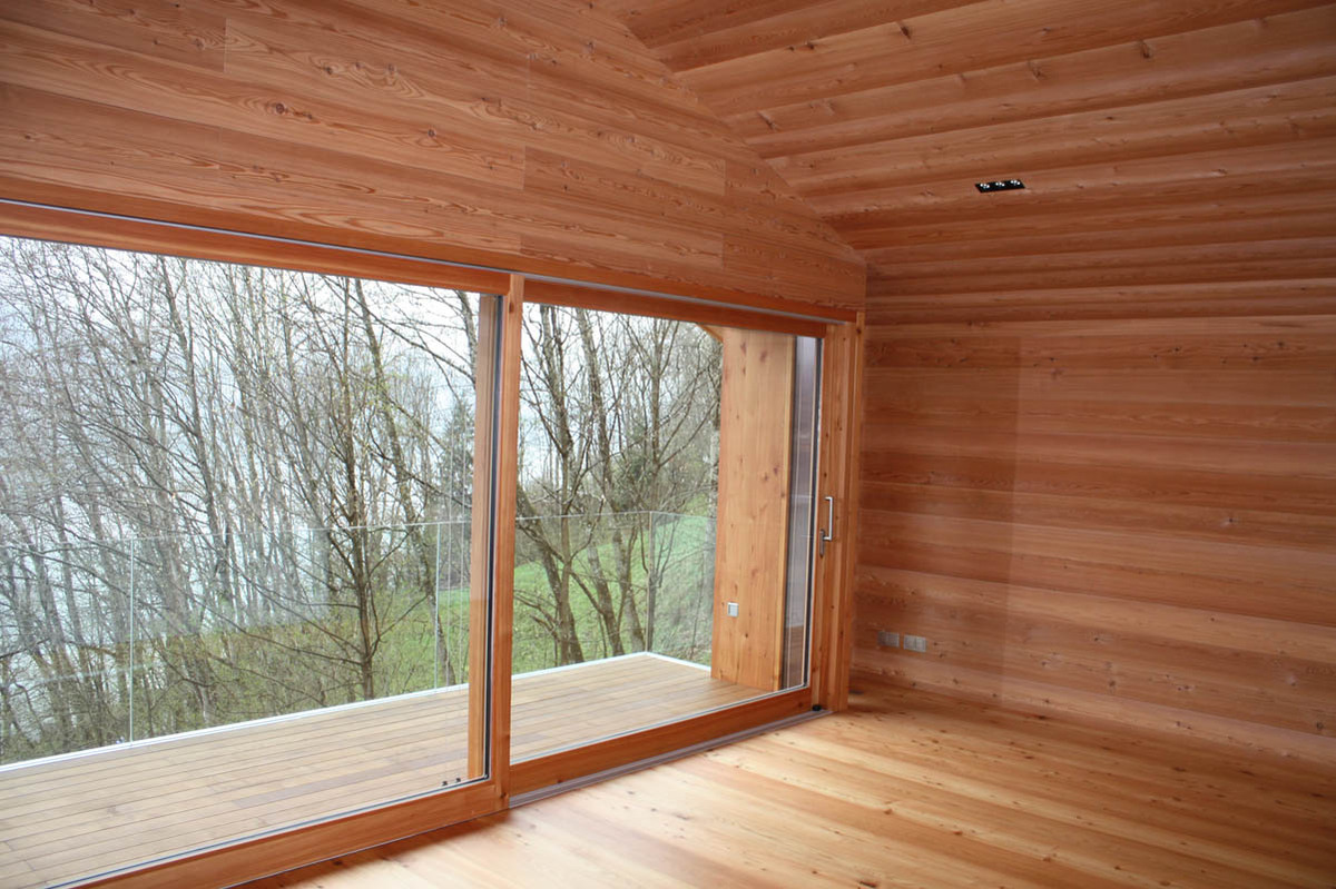 In Verbindung mit moderner Verglasung entsteht ein großflächiges Schiebeelement, das viel Licht in den Raum bringt und handwerkliche Qualität verbindet. Dadurch öffnet sich der Wohnraum weit nach außen – mit einem freien Blick in den Garten und einem angenehmen Übergang zwischen Innen und Außen.