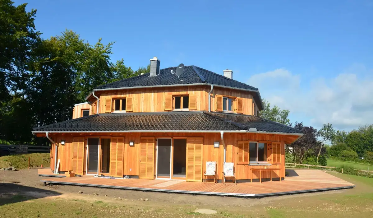 Der kreuzweise Aufbau der Brettlagen in Kombination mit den Buchenschrauben ergibt ein äußerst formstabiles System. NUR-HOLZ Häuser sind setzungsfrei und behalten ihre Form dauerhaft – ein wesentlicher Faktor für Langlebigkeit und Werterhalt.