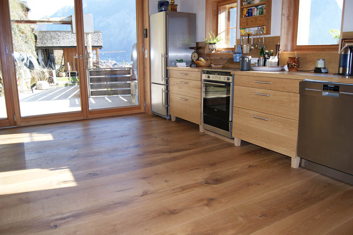Breite Massivholzböden haben eine lange Tradition. Früher waren sie selbstverständlich in großen Räumen von Landhäusern, Schlössern und Kirchen zu finden. Mit der Zeit sind sie aus der Architektur verschwunden. Heute kehren sie zurück – als bewusster Akzent in moderner Architektur ebenso wie bei der behutsamen Restaurierung historischer Gebäude.