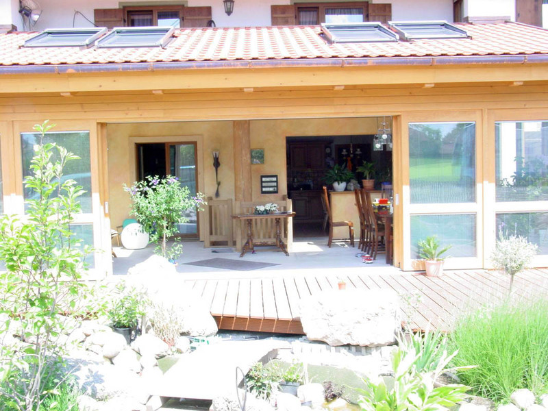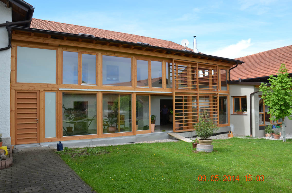 In Verbindung mit moderner Verglasung entsteht ein großflächiges Schiebeelement, das viel Licht in den Raum bringt und handwerkliche Qualität verbindet. Dadurch öffnet sich der Wohnraum weit nach außen – mit einem freien Blick in den Garten und einem angenehmen Übergang zwischen Innen und Außen.