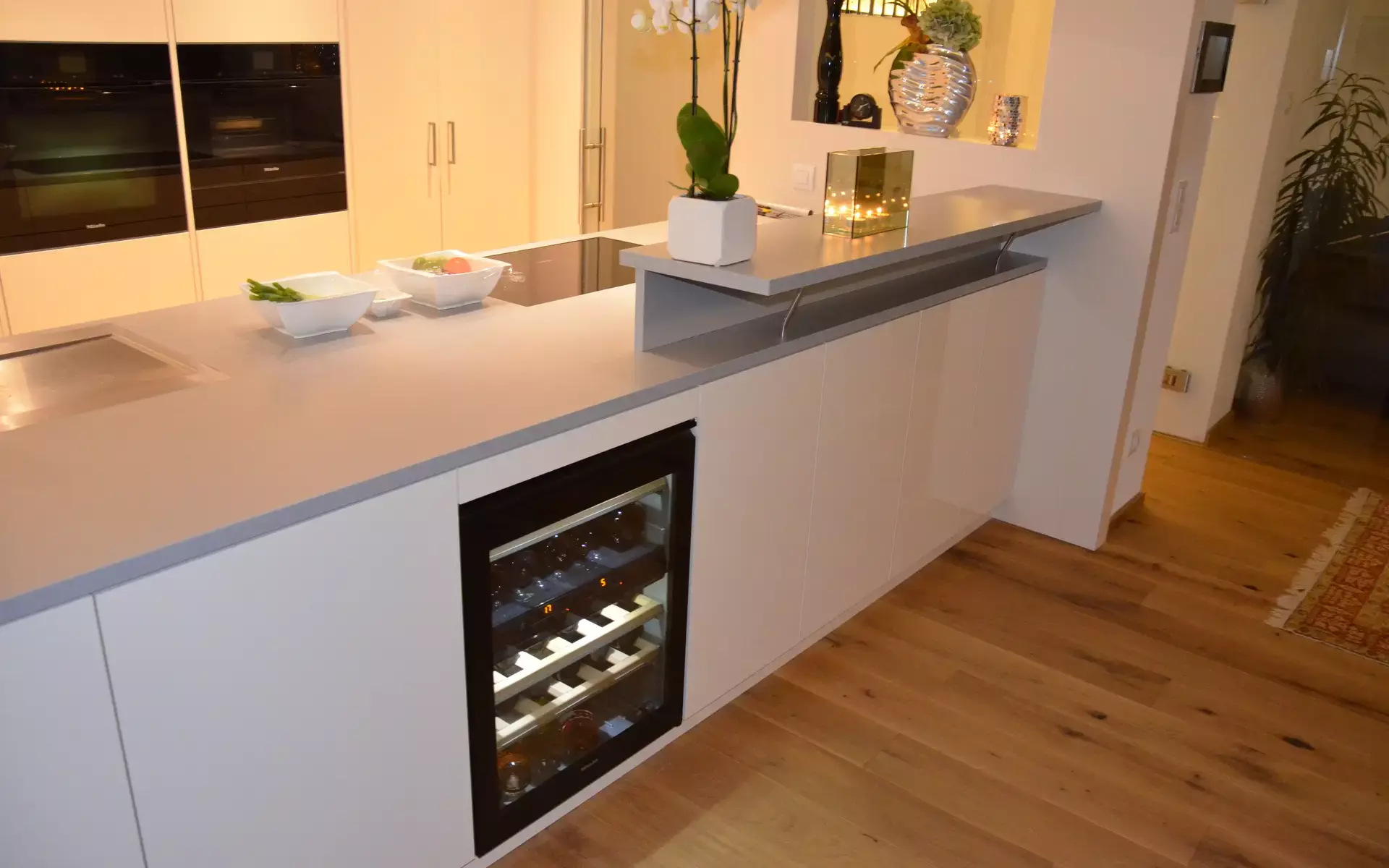 Unsere Küchen zeichnen sich durch durchdachte Stauraumlösungen, hochwertige Materialien und stilvolle Gestaltung aus – und machen die Küche zu einem beliebten Ort des Zusammentreffens. Das Beste: Sie begleiten den Entstehungsprozess auf Wunsch Schritt für Schritt mit.