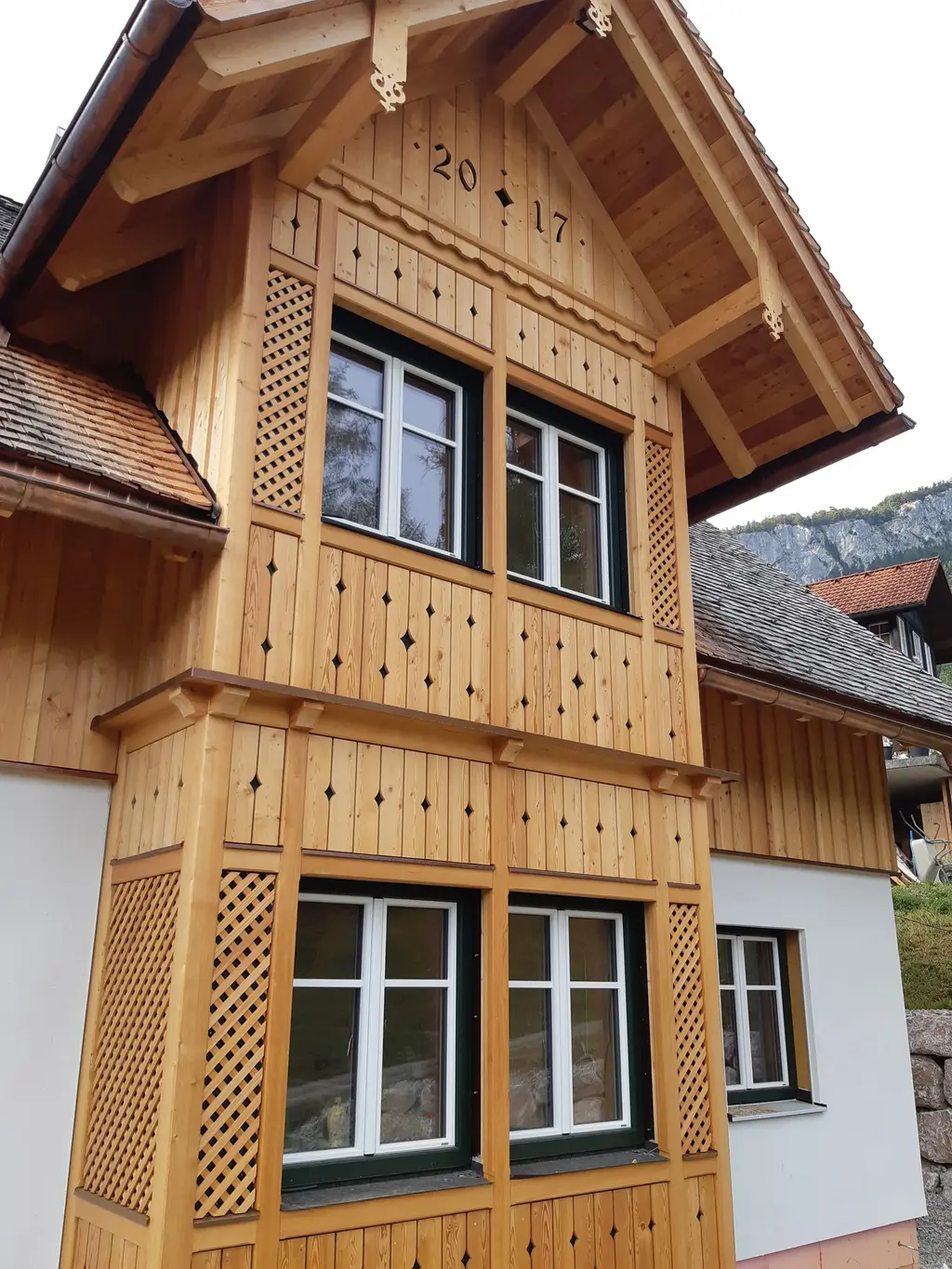 NUR-HOLZ Haus in Bad GoisernEin Haus aus reinem MassivholzSchichtholz Leimfrei, mit Holzschrauben, verbunden