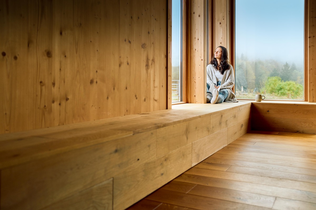 Holz nimmt Feuchtigkeit aus der Raumluft auf und gibt sie zeitversetzt wieder ab. Diese Eigenschaft unterstützt ein stabiles Raumklima und reduziert das Risiko von Tauwasserbildung. Die natürliche Regulierung wirkt sich nicht nur positiv auf die Bausubstanz, sondern vor allem auf das Wohnen aus.